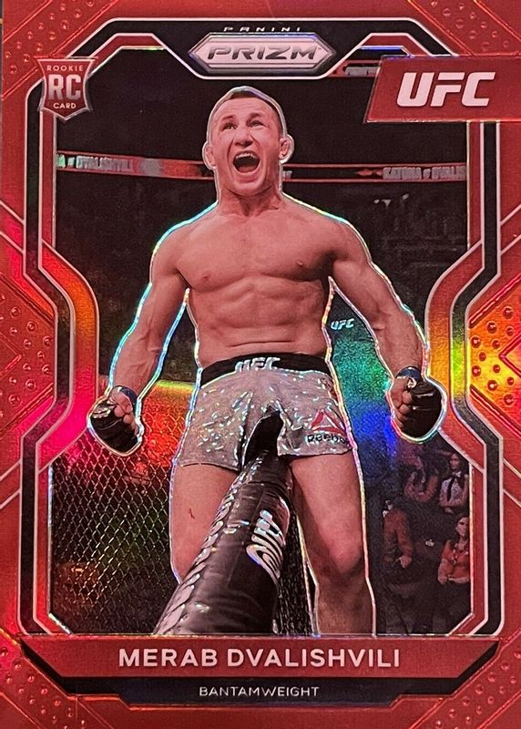 The Merab Dvalishvili 2021 Prizm UFC #87 Red /275 Rookie card in Raw condition has not changed in price in the last 30 days and was last sold for $23.50 .
