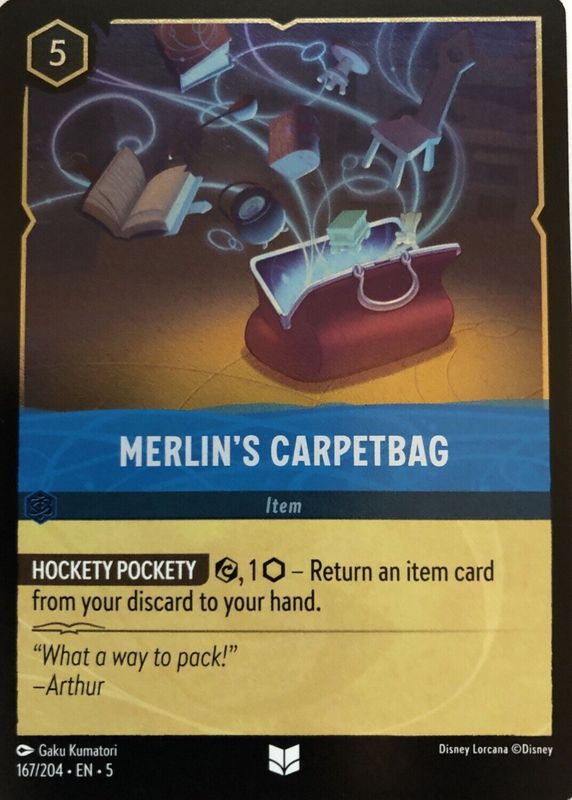 Disney Lorcana Shimmering Skies Merlin’s Carpetbag Cold Foil 167/204 NM