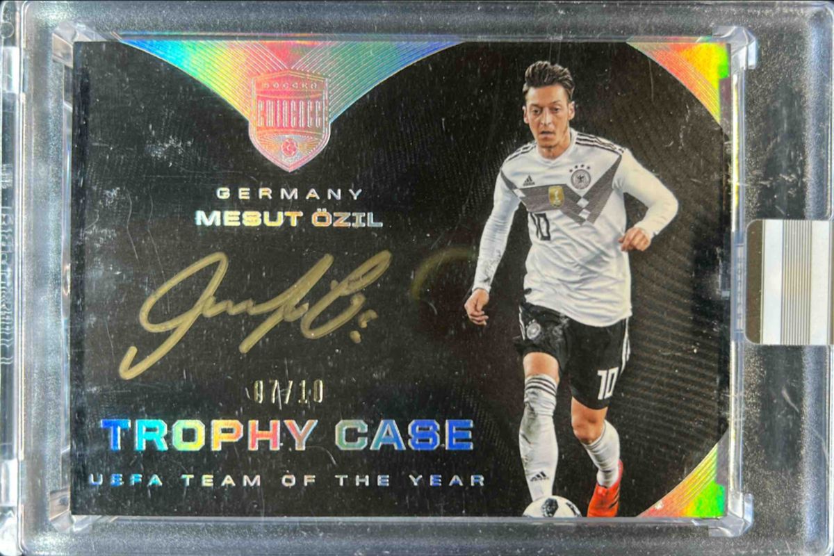 The Mesut Ozil 2018 Eminence #T-OZL Trophy Case /10 card is 1 of 58 Mesut Ozil's card variations in the 2018 Eminence set being tracked by Sports Card Investor, including Autographs /10, Banner Signatures /10, Championship Calligraphy /10, Crown Jewels /10, and Etched in History /10.