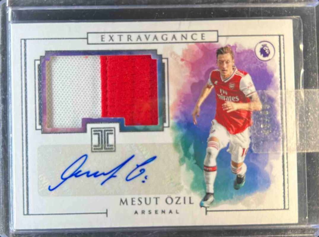 The Mesut Ozil 2019 Impeccable Premier League #EX-OZL Extravagance Patch Autographs /99 card is 1 of 32 Mesut Ozil's card variations in the 2019 Impeccable Premier League set being tracked by Sports Card Investor, including Dual Material Autographs /99, Elegance Jersey Autographs /99, Illustrious Ink /99, Impeccable Dual Materials /99, and Impeccable Materials /99.