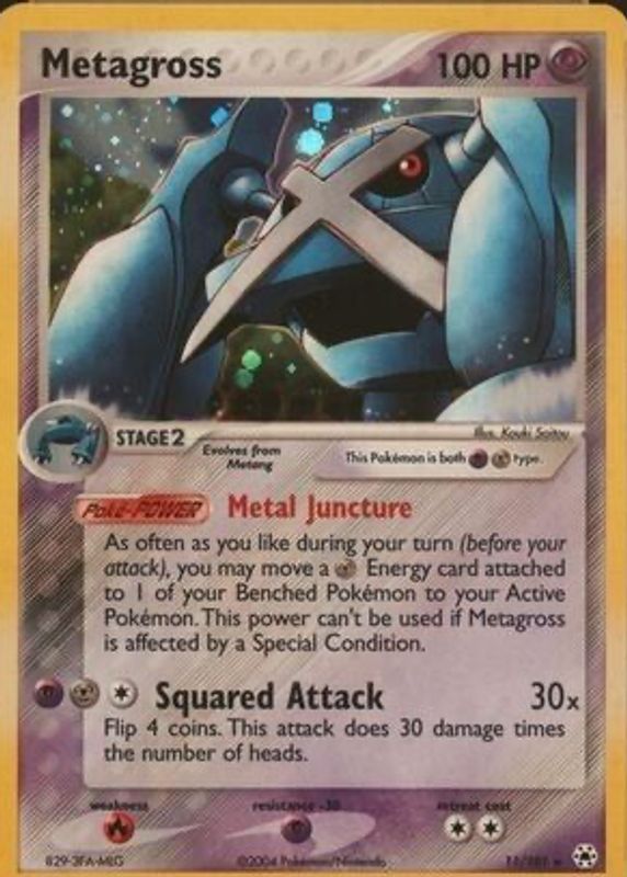 This card is 1 of 3 Metagross' card variations in the 2004 EX: Hidden Legends set being tracked by Sports Card Investor, including Reverse Holo, and Promo (Wish Maker Theme Deck).