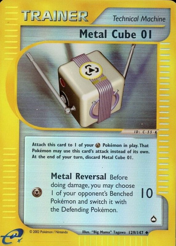 The Metal Cube 01 2003 Aquapolis #129/147 Reverse Holo card in Raw TCG (Near Mint) condition has moved down -$0.99 (-14.2%) in the last 30 days and was last sold for $6.00 .