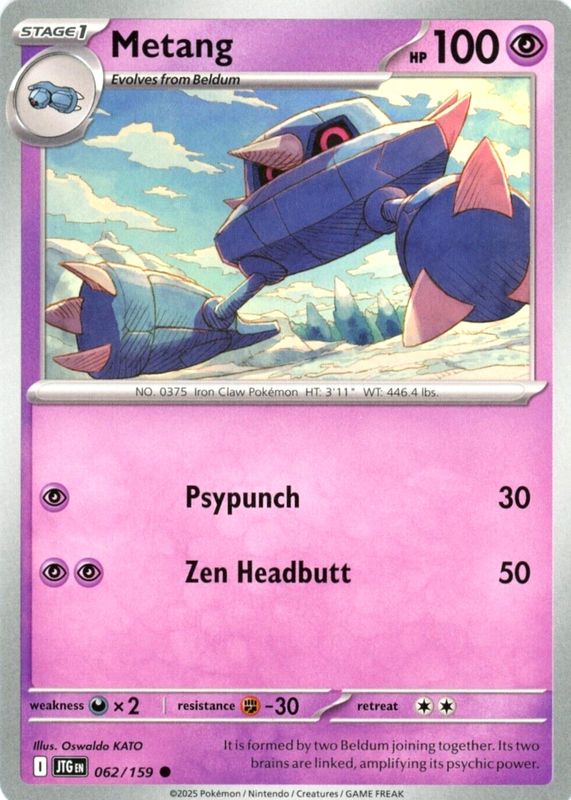 Metang 2025 Scarlet & Violet: Journey Together #062/159 Base RAW TCG (LIGHTLY PLAYED) Price Guide