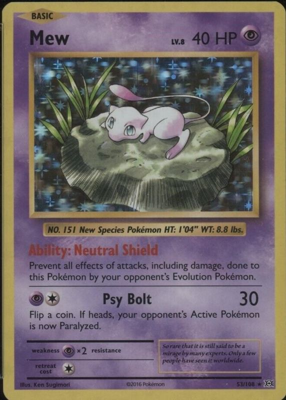 Mew 2016 XY: Evolutions #053/108 Holo RAW TCG (NEAR MINT) Price Guide