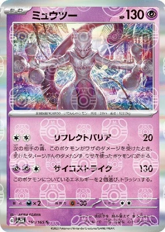 This card is 1 of 4 Mewtwo's card variations in the 2023 Japanese Scarlet & Violet: 151 set being tracked by Sports Card Investor, including Holo, Reverse Holo, and Art Rare.