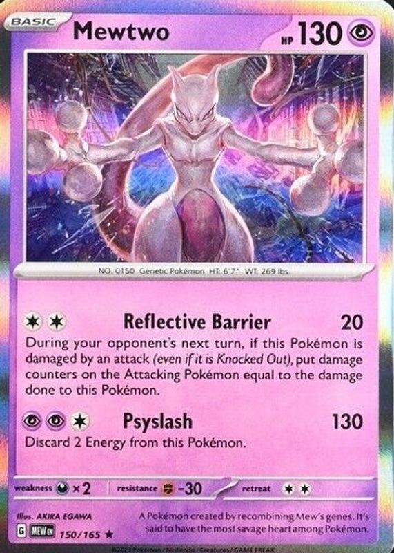 This card is 1 of 3 Mewtwo's card variations in the 2023 Scarlet & Violet: 151 set being tracked by Sports Card Investor, including Base, and Reverse Holo.