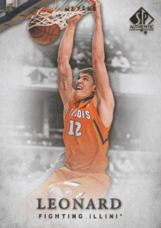 The Meyers Leonard 2012 SP Authentic #21 Base Rookie card is 1 of 9 Meyers Leonard's card variations in the 2012 SP Authentic set being tracked by Sports Card Investor, including Base, Autographs, Canvas Collection, Canvas Collection Autographs, and Canvas Collection Autographs Gold.
