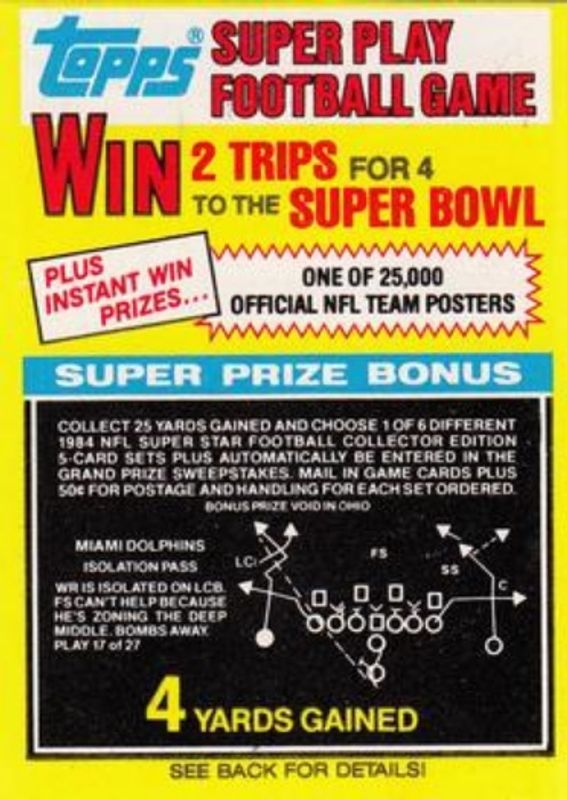 Miami Dolphins 1984 Topps #17 Super Play Game Cards RAW Price Guide