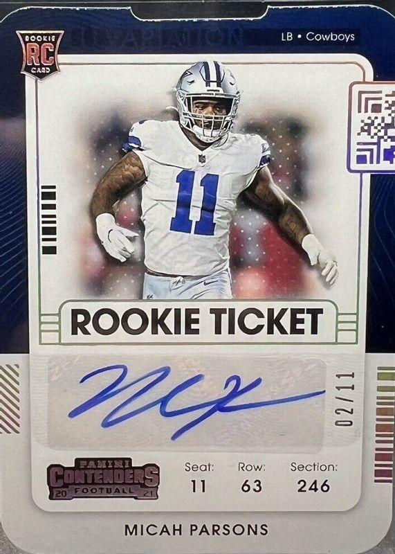 This card is 1 of 17 Micah Parsons' card variations in the 2021 Contenders set being tracked by Sports Card Investor, including Rookie Ticket Auto, Rookie Ticket Auto Variation, Rookie Ticket Auto - Red Zone Ticket, Rookie Ticket Auto - Ticket Stub (/11), and Rookie Ticket Auto Variation - Wild Card.