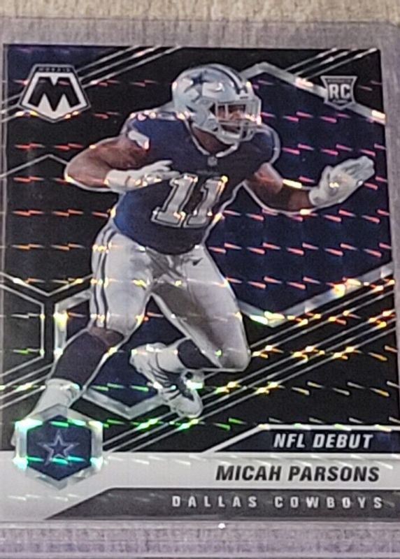 The Micah Parsons 2021 Mosaic #257 NFL Debut - Black /1 Rookie card in Raw condition has not changed in price in the last 30 days and was last sold for $767.78 .