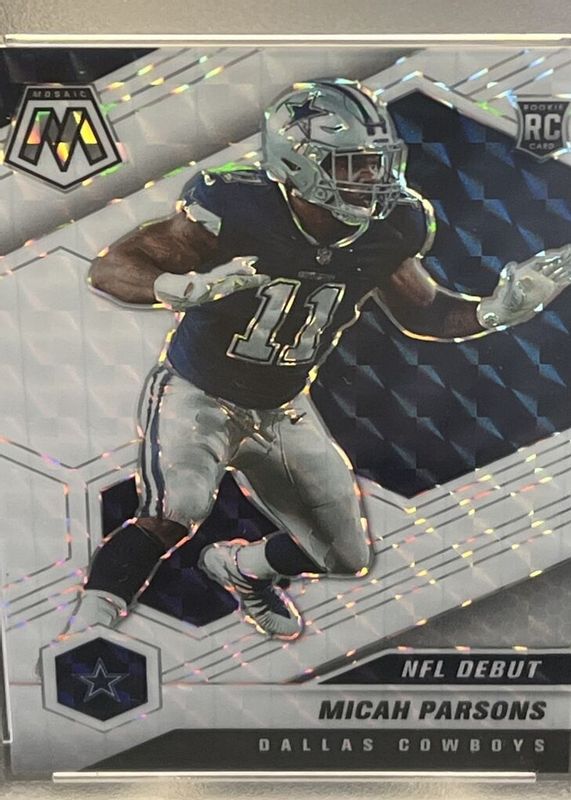 The Micah Parsons 2021 Mosaic #257 NFL Debut - White /25 Rookie card in Raw condition has not changed in price in the last 30 days and was last sold for $41.00 .