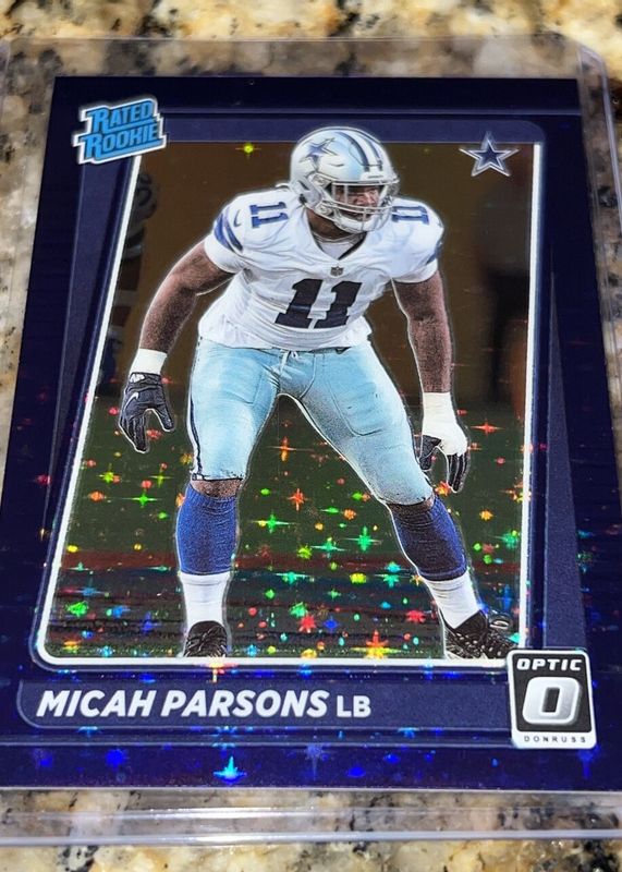 The Micah Parsons 2021 Optic #245 Purple Stars /15 Rookie card in Raw condition has not changed in price in the last 30 days and was last sold for $124.00 .