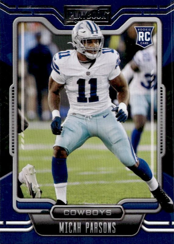 The Micah Parsons 2021 Playbook #145 Base Rookie card in Raw condition has moved up $4.51 (+456%) in the last 30 days and was last sold for $5.50 .
