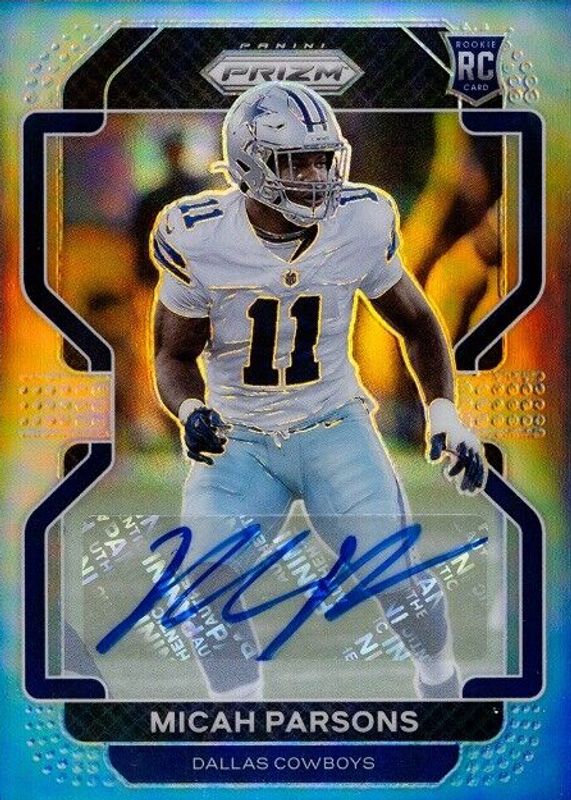 The Micah Parsons 2021 Prizm #382 Rookie Autographs - Silver card in Raw condition has not changed in price in the last 30 days and was last sold for $112.50 .