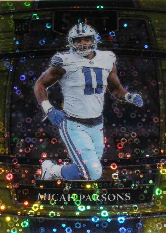 This card is 1 of 40 Micah Parsons' card variations in the 2021 Select set being tracked by Sports Card Investor, including Concourse, Concourse Black & Gold Die-Cut, Concourse Disco, Concourse Green & Yellow Die-Cut, and Concourse Red & Blue Die-Cut.