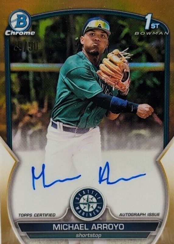 2023 Bowman Chrome Michael Arroyo 1st Prospect True Gold Auto /50 CPA-MA Seattle