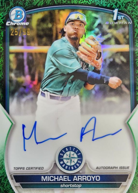 2023 Bowman Chrome Michael Arroyo #CPA-MA Green Grass 1st Auto /99 Seattle