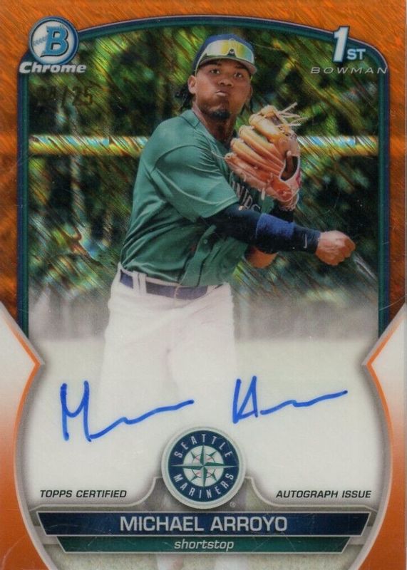 Michael Arroyo 2023 Bowman #CPA-MA Chrome Prospect Auto - Orange Shimmer Refractor /25 (1st) RAW Price Guide