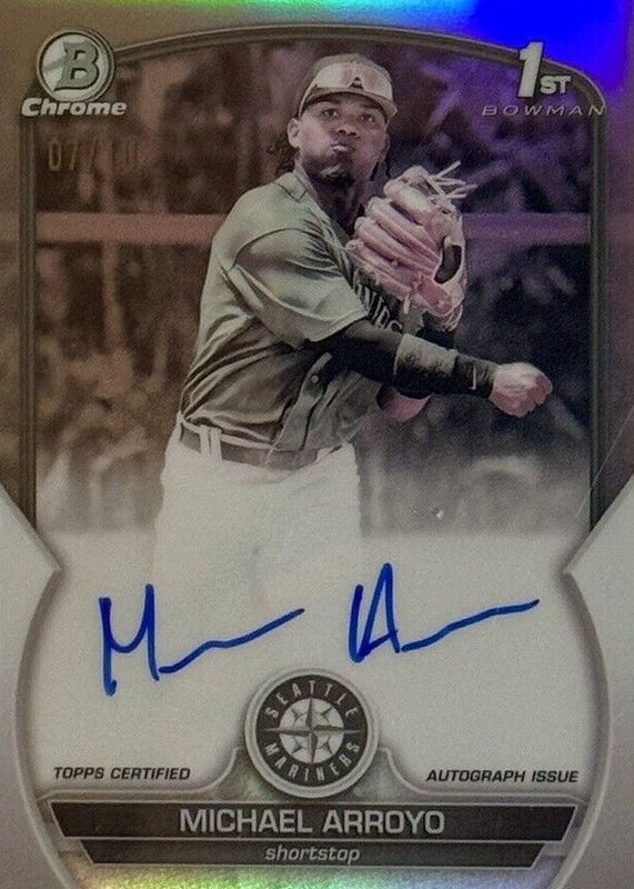 Michael Arroyo 2023 Bowman #CPA-MA Chrome Prospect Auto - Pearl Refractor /10 (1st) RAW Price Guide