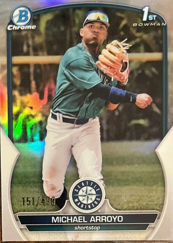 2023 Bowman Chrome #BCP63 MICHAEL ARROYO RC REFRACTOR #d 476/499 Mariners