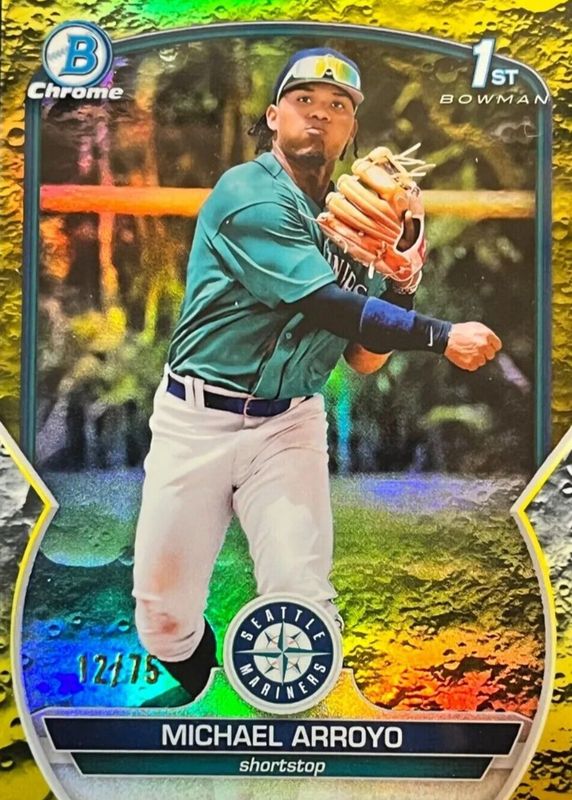 Michael Arroyo 2023 Bowman 1st Chrome Yellow Lunar Refractor /75 Mariners BCP-63