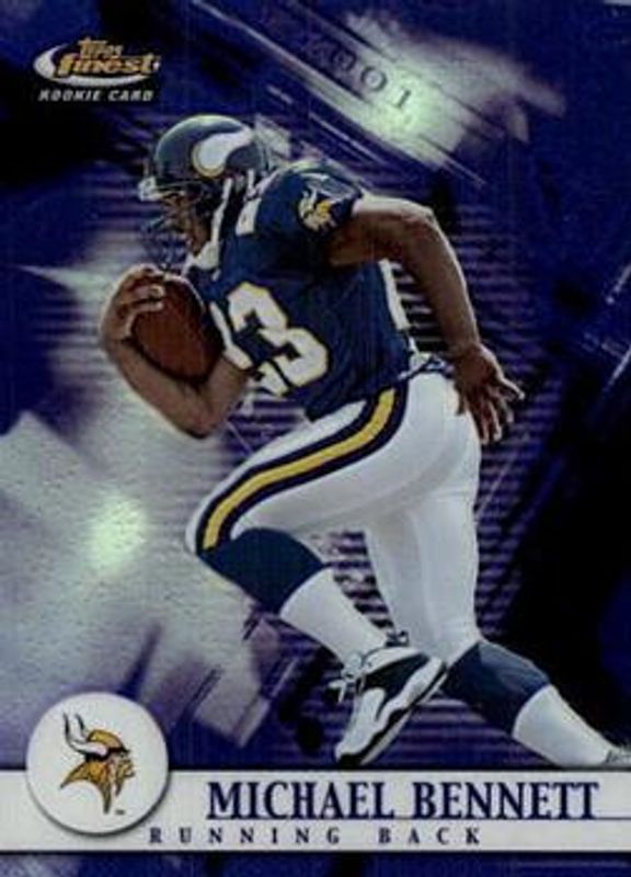 The Michael Bennett 2001 Topps Finest #133 Base Rookie card is 1 of 2 Michael Bennett's card variations in the 2001 Topps Finest set being tracked by Sports Card Investor, including Autographs.