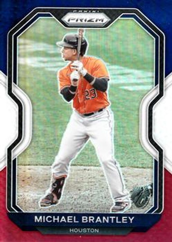 The Michael Brantley 2021 Prizm #243 Red White Blue card is 1 of 42 Michael Brantley's card variations in the 2021 Prizm set being tracked by Sports Card Investor, including Blue, Blue Velocity, Carolina Blue, Cosmic Haze, and Giraffe.
