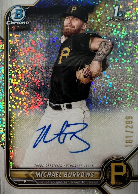 2022 Bowman Chrome MICHAEL BURROWS speckle refractor auto 146/299 RC 1st Pirates