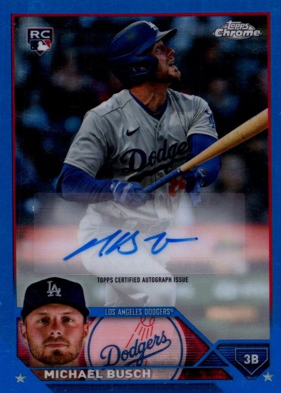 2023 Topps Chrome Update Michael Busch Auto RC Blue Refractor #65/150 Dodgers