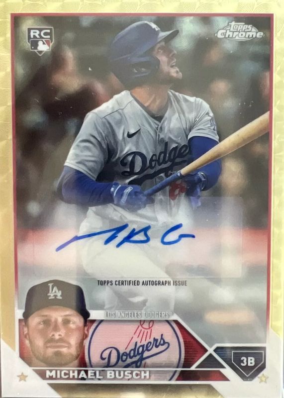 This card is 1 of 20 Michael Busch's card variations in the 2023 Topps Chrome Update set being tracked by Sports Card Investor, including Autographs, Autographs - Black & White Mini-Diamond Refractor, Autographs - Refractor /499, Autographs - Purple Speckle Refractor /299, and Autographs - Purple Refractor /250.