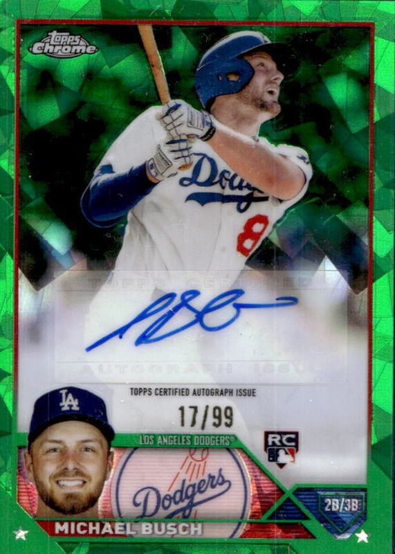 2023 Topps Chrome Update Sapphire Edition Green /99 Michael Busch Rookie Auto RC