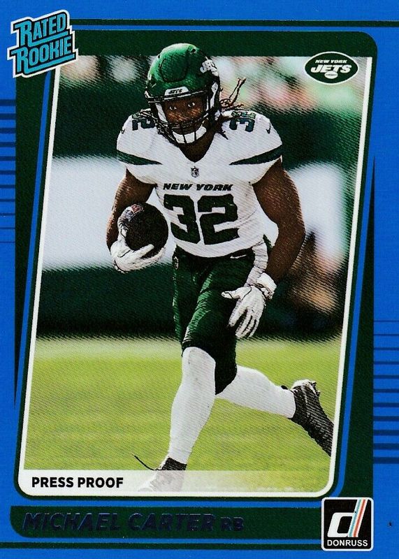 2021 Donruss Rated Rookie MICHAEL CARTER Blue Press Proof RC #268 Jets