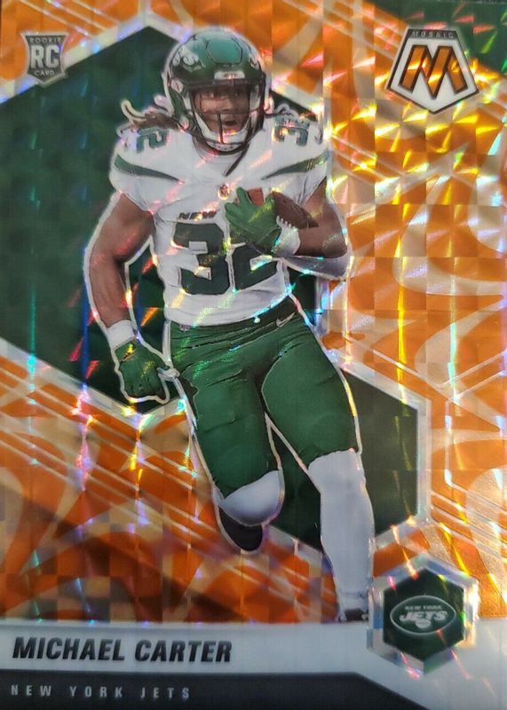 2021 Panini Mosaic MICHAEL CARTER Rookie Card RC ORANGE REACTIVE #335 NY JETS SP