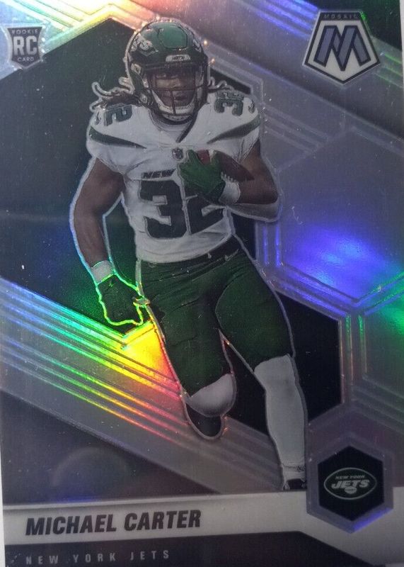 MICHAEL CARTER 2021 Panini Mosaic Silver Mosaic Prizm Rookie Card RC #335 Jets