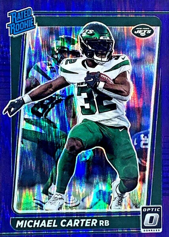 2021 Donruss Optic MICHAEL CARTER 235 Rated Rookie Purple Shock Prizm JETS