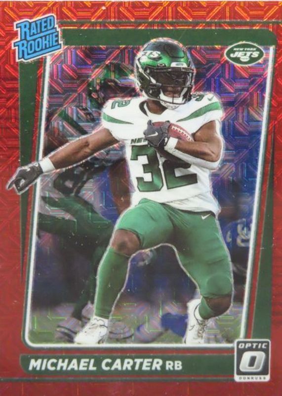 2021 Panini Donruss Optic #235 Michael Carter Rated Rookie Red Mojo Prizm