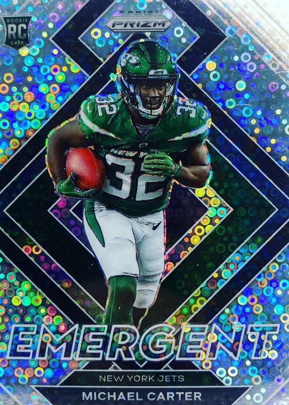 2021 Prizm Football Michael Carter Emergent No Huddle Disco #E-20 Rookie Card RC