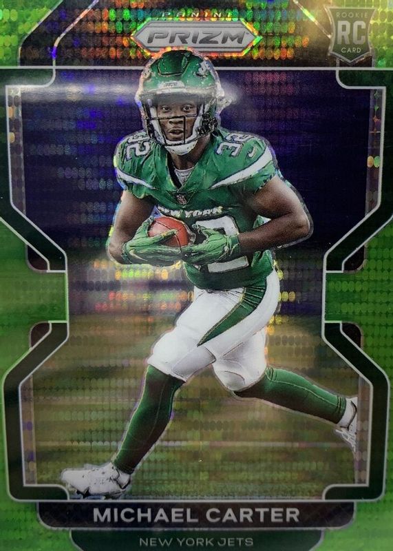 2021 Panini Prizm Michael Carter Neon Green Pulsar Prizm Rookie RC #365 Jets