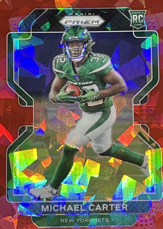 MICHAEL CARTER RC 2021 Prizm Red Cracked Ice Parallel #365 Rookie New York Jets