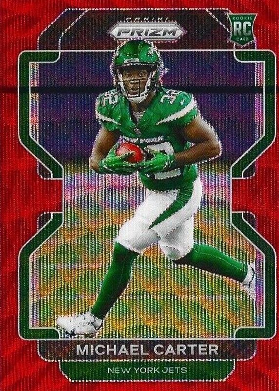 2021 Prizm Michael Carter Red Wave Prizm Rookie RC #027/149 Jets