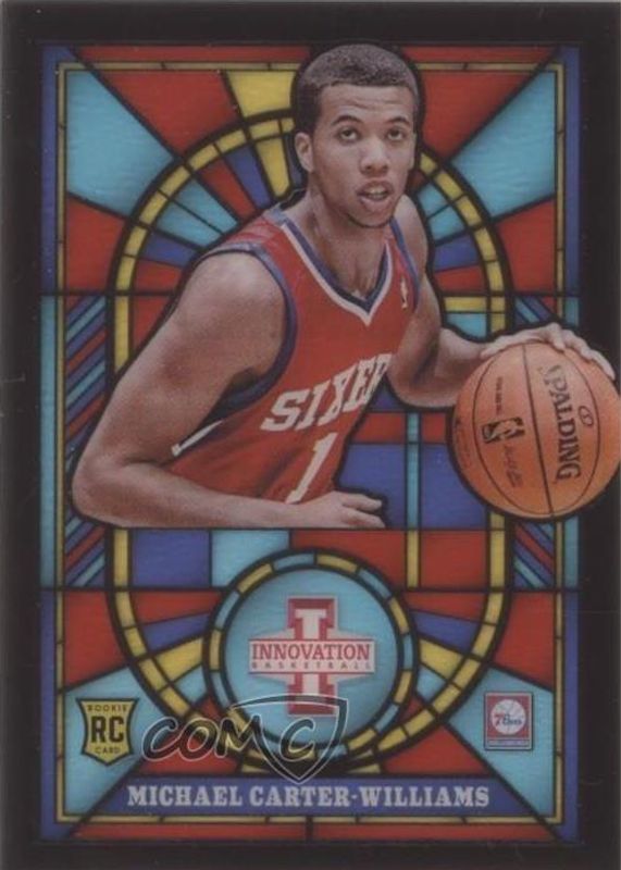 The Michael Carter-Williams 2013 Innovation #9 Rookie Stained Glass - Light Blue /(SSP) card in Raw condition has not changed in price in the last 30 days and was last sold for $34.15 .