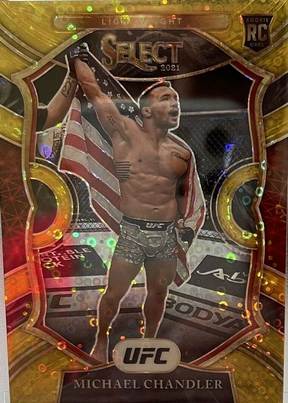 The Michael Chandler 2021 Select UFC #9 Concourse Gold Disco /10 Rookie card in Raw condition has not changed in price in the last 30 days and was last sold for $130.00 .