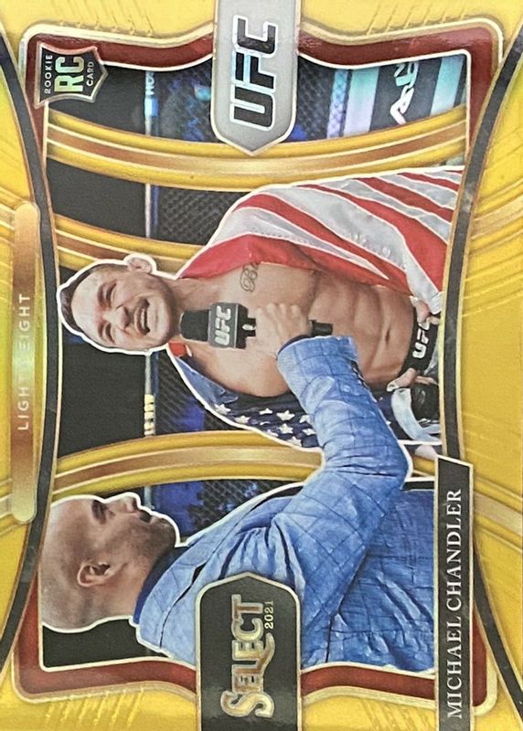 The Michael Chandler 2021 Select UFC #183 Premier Level Gold Disco /10 Rookie card in Raw condition has not changed in price in the last 30 days and was last sold for $72.69 .