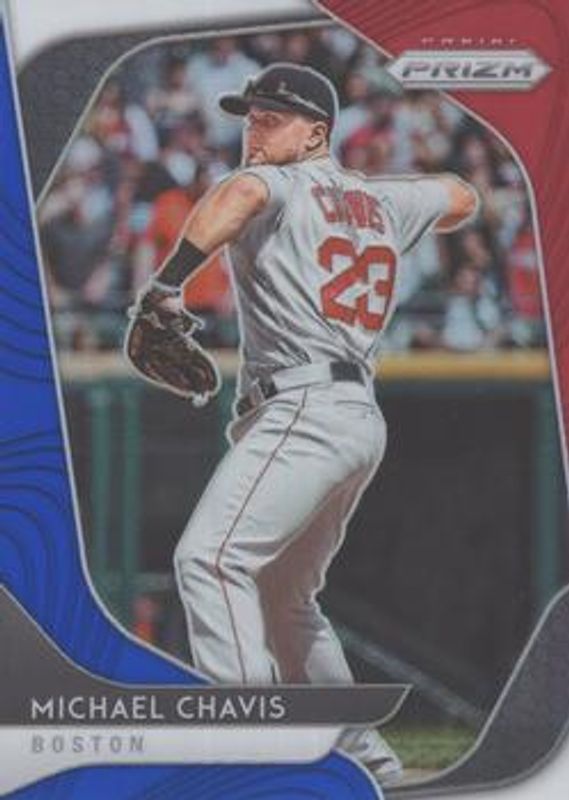 The Michael Chavis 2020 Prizm #91 Red White Blue card is 1 of 42 Michael Chavis' card variations in the 2020 Prizm set being tracked by Sports Card Investor, including Base, Blue, Carolina Blue, Cosmic Haze, and Green.