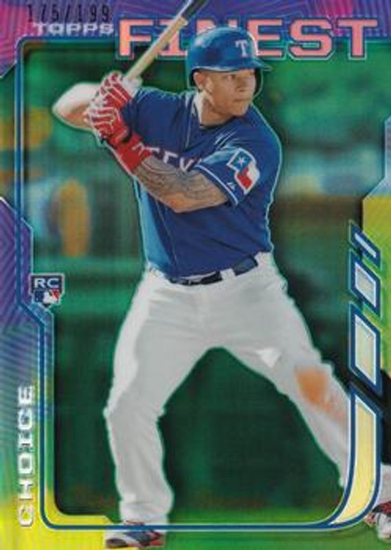 The Michael Choice 2014 Topps Finest #6 Green Refractor /199 Rookie card is 1 of 32 Michael Choice's card variations in the 2014 Topps Finest set being tracked by Sports Card Investor, including Base, Refractor, Orange Refractor, X Fractor, and Blue Refractor /125.