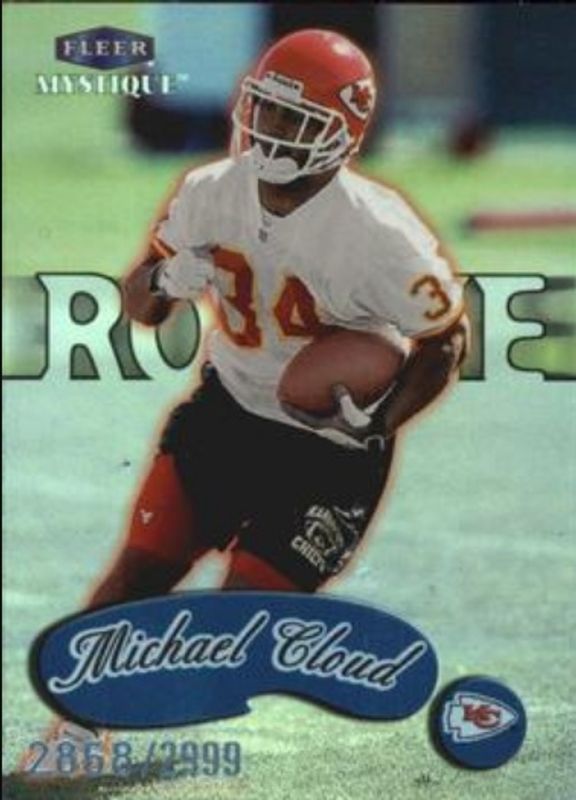 The Michael Cloud 1999 Fleer Mystique #112 Base /2999 Rookie card is 1 of 2 Michael Cloud's card variations in the 1999 Fleer Mystique set being tracked by Sports Card Investor, including Masterpiece /1.