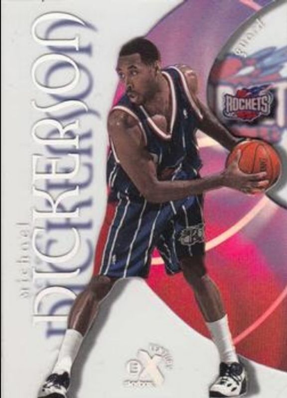 The Michael Dickerson 1998 Skybox E-X Century #70 Base Rookie card is 1 of 6 Michael Dickerson's card variations in the 1998 Skybox E-X Century set being tracked by Sports Card Investor, including Essential Credentials Future (/21), Essential Credentials Now (/70), Dunk 'N Go-Nuts, Autographics, and Authen Kicks /225.