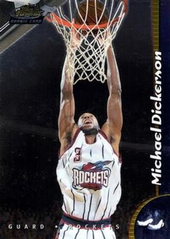 The Michael Dickerson 1998 Topps Finest #239 Base Rookie card is 1 of 6 Michael Dickerson's card variations in the 1998 Topps Finest set being tracked by Sports Card Investor, including Base - No Coating, Refractor, Refractor - No Coating, Court Control /750, and Court Control - Refractor /150.