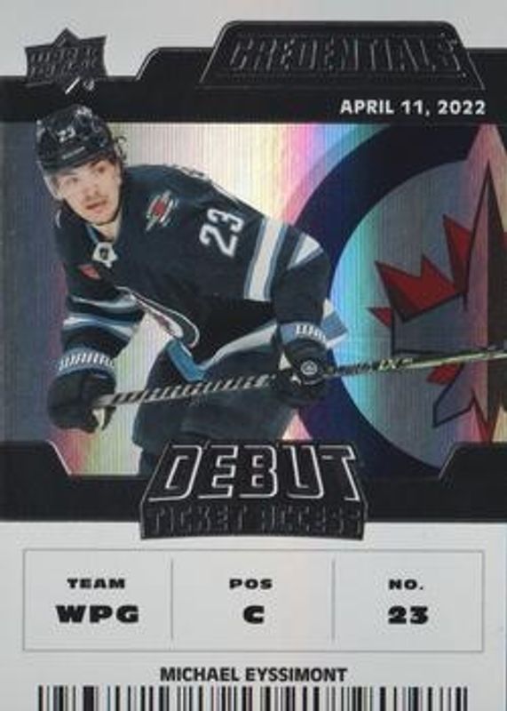 Michael Eyssimont 2022 Upper Deck Credentials #134 Base /999 Rookie RAW Price Guide