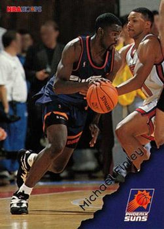 The Michael Finley 1996 Hoops #121 Base card is 1 of 7 Michael Finley's card variations in the 1996 Hoops set being tracked by Sports Card Investor, including Base, Silver, Hot List, Rookie Headliners, and Autographics Black Ink.